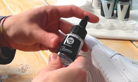 2. Prendere il detergente Vincent Cleaner, agitarlo bene, quindi distribuirlo su un panno o dischetto di cotone.